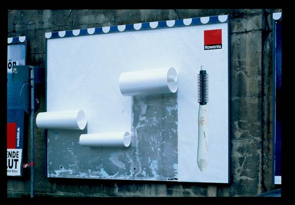 Rok 2002 a značka Rowenta takto demonštruje výkon a efekt svojho nového produktu na OOH plochách. Kampaň pripravila agentúra Publicis Frankfurt.