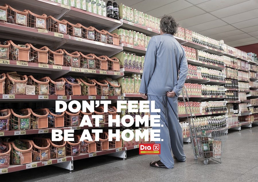 “Don’t feel at home. Be at home.” bola jednoduchá správa značky DIA Supermarkets v roku 2019 pre jej home delivery segment. Pripravila agentúra Z Plus Comunicaçao z Brazílie.