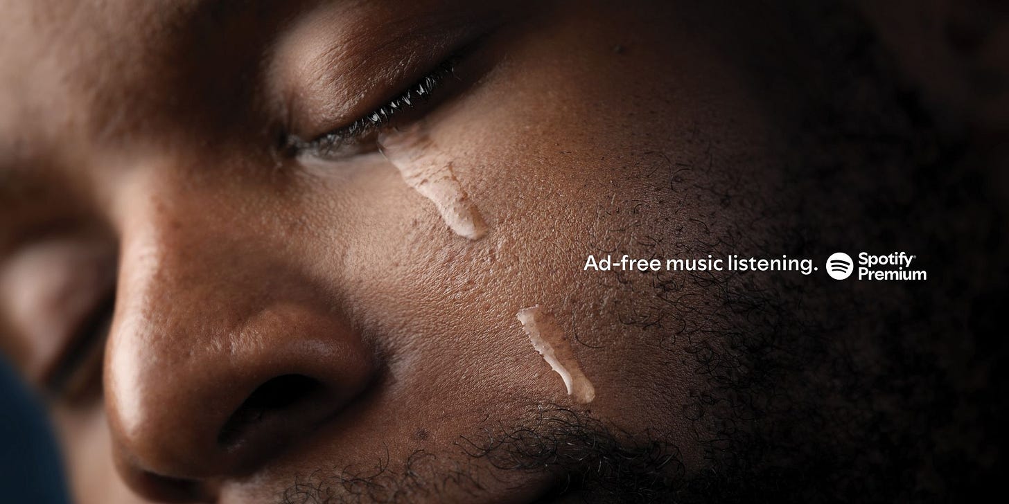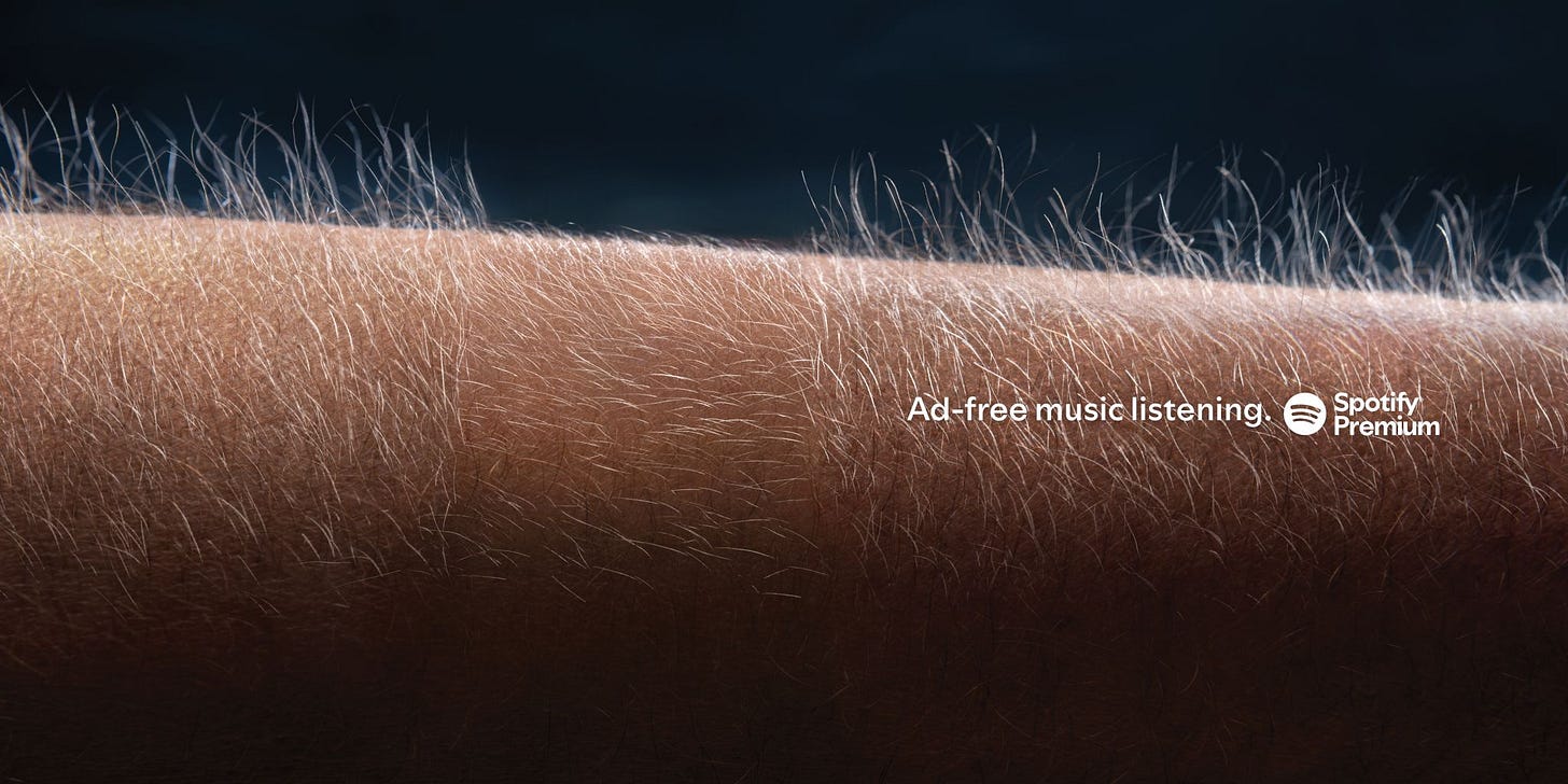 Niekoľkokrát som minulý týždeň videl tieto printy pre Spotify Premium, teda tú časť streamovacej platformy, prostredníctvom ktorej počúvate všetok obsah bez reklám. Pripravila Machine_.