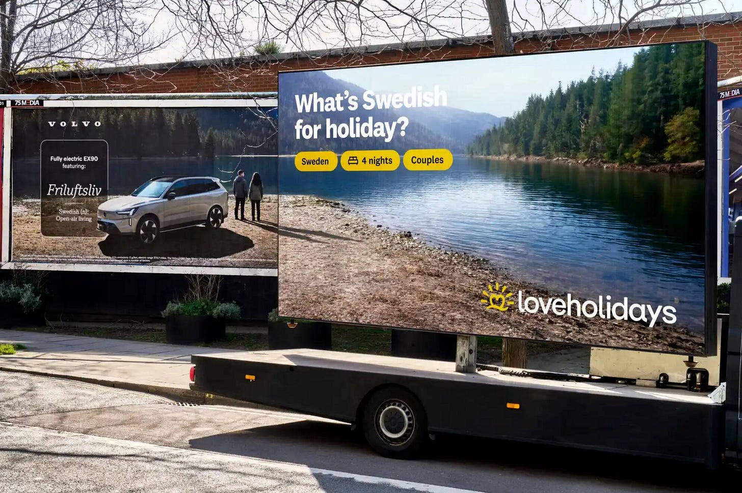 Kampaň od agentúry ARK pre „travel booking“ stránku loveholidays umiestnila svoje billboardy vedľa existujúcich vonkajších reklám, čím premieňa susediace kampane na výzvy na rezerváciu dovolenky.
