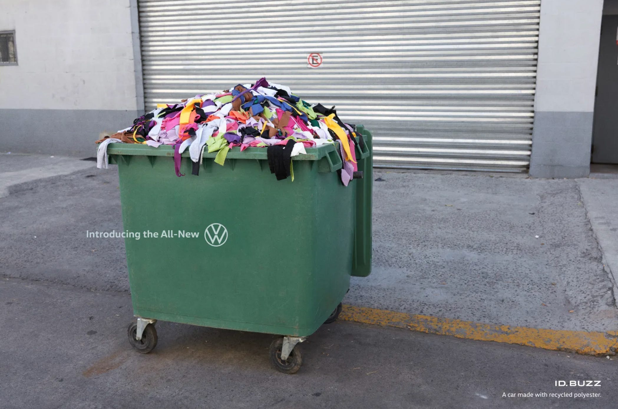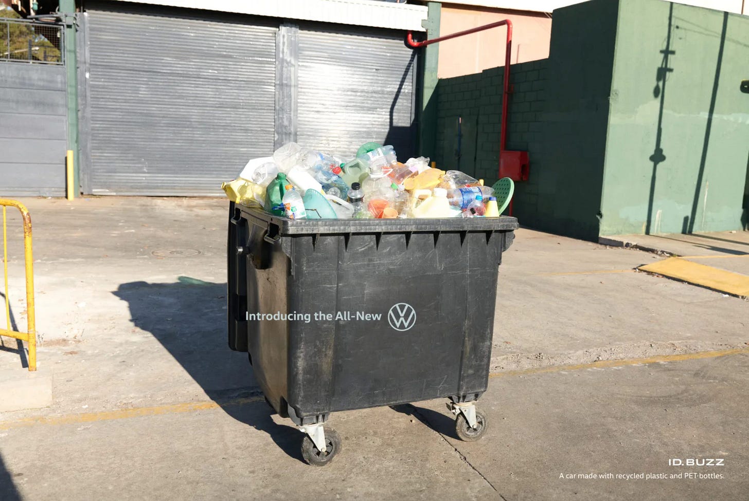 Importér značky Volkswagen dáva na vizuáloch, ktoré vidíte nižšie práve takto najavo, že nový model ID Buzz je z časti vyrobený z recyklovaných PET fliaš. Pripravilio BBDO Chile a BBDO Ekvádor.