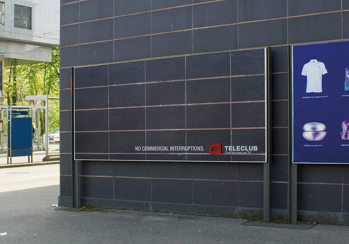 Značka Teleclub dnes neexistuje. Švajčiarská káblová televízia založená v roku 1982 bola jedna z mála, ktorá neprerušovala vysielanie reklamou. Pred takmer dvadsiatimi rokmi pripravila outdoor nižšie agentúra Advico Young & Rubicam.